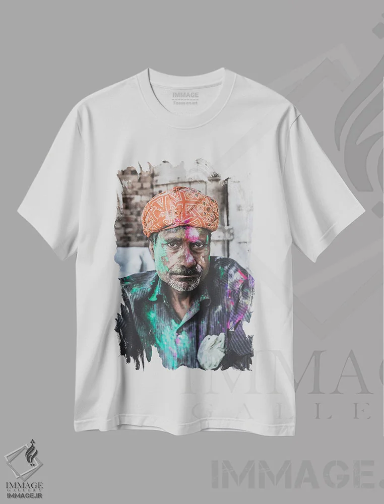 تیشرت سفید طرح دار مَتورا، هند، دکور آسیایی اثر لوک آنتونی گرم | فروشگاه ایماژ تیشرت طرح دار مَتورا، هند اثر لوک آنتونی گرم