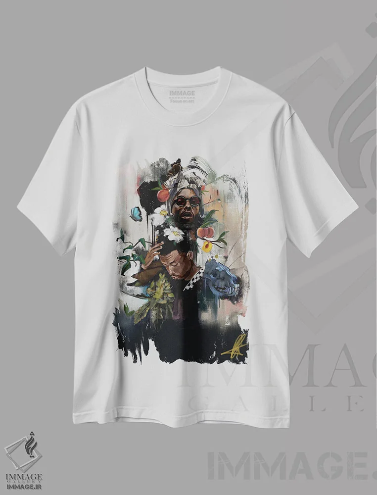 تیشرت سفید طرح دار دوستی، هنر آمریکایی آفریقایی تبار اثر هری ادونزه | فروشگاه ایماژ تیشرت طرح دار دوستی اثر هری ادونزه