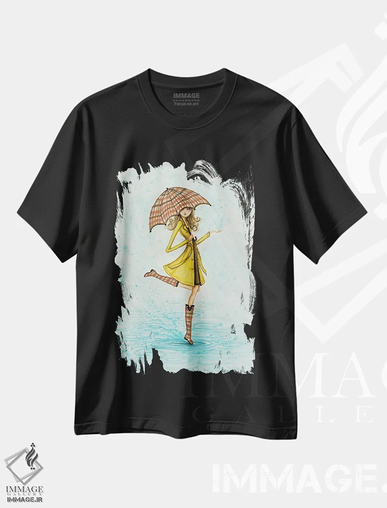 تیشرت مشکی طرح دار قطره های باران، مدیوم اثر بلا پیلار | فروشگاه ایماژ تیشرت طرح دار قطره های باران اثر بلا پیلار
