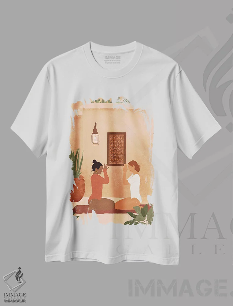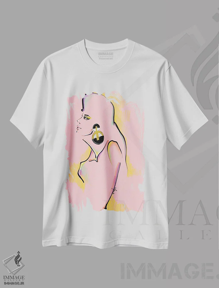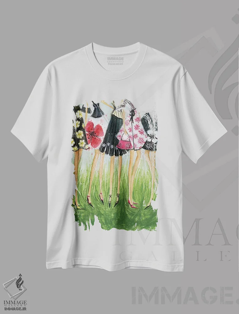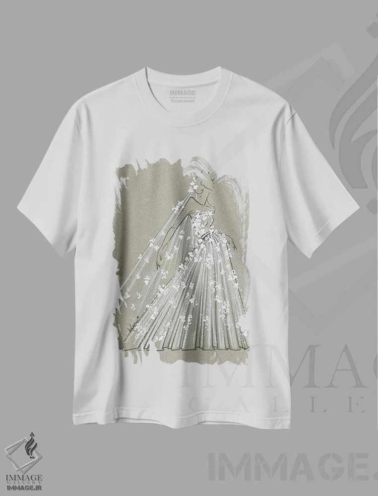 تیشرت سفید طرح دار حرکات مد عروس، تزئینی اثر الی عظیزیان | فروشگاه ایماژ تیشرت طرح دار حرکات مد عروس اثر الی عظیزیان