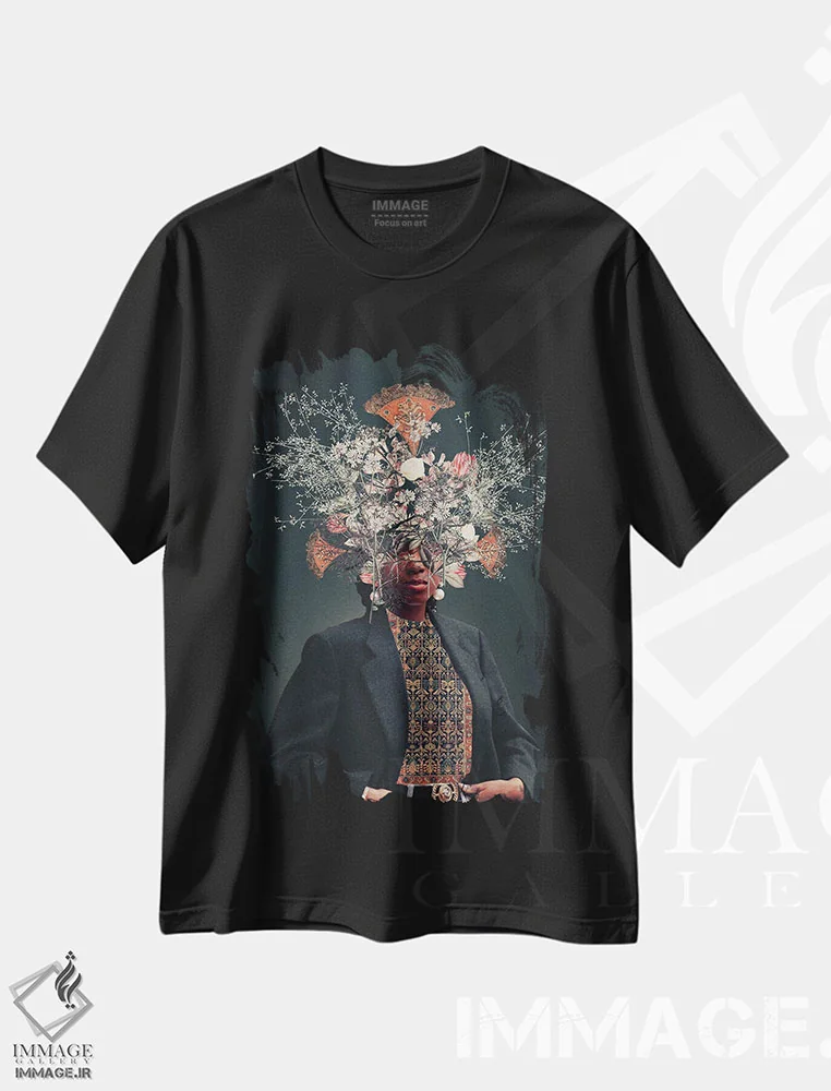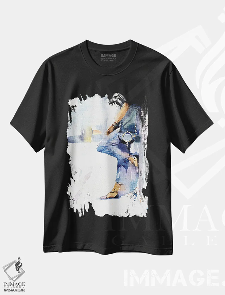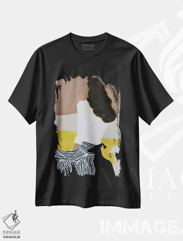 تیشرت مشکی طرح دار به این چیزها فکر کن، هنر فاخر معاصر اثر تارا گامل | فروشگاه ایماژ تیشرت طرح دار به این چیزها فکر کن اثر تارا گامل