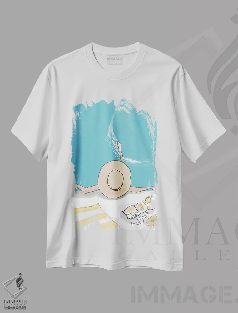 تیشرت سفید طرح دار تفریح زیر آفتاب، دکور ساحلی اثر هدر استیلافسن | فروشگاه ایماژ تیشرت طرح دار تفریح زیر آفتاب اثر هدر استیلافسن