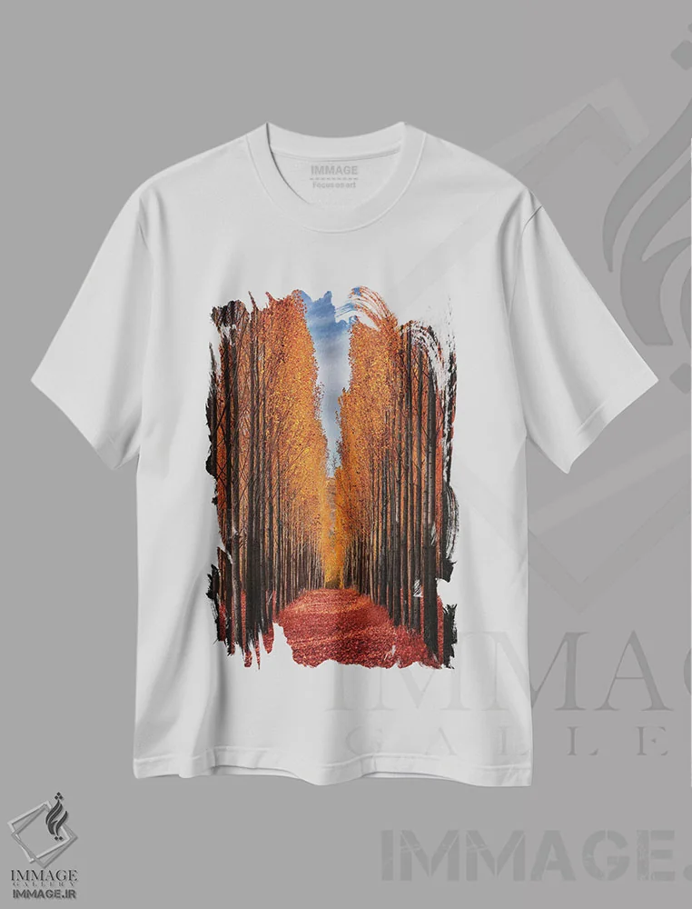 تیشرت سفید طرح دار پاییز رنگارنگ، مدیوم اثر حامد قانع | فروشگاه ایماژ