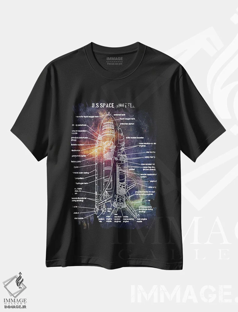 تیشرت مشکی طرح دار شاتل فضایی آمریکا، تزئینی اثر جوزف فرناندو | فروشگاه ایماژ تیشرت طرح دار شاتل فضایی آمریکا اثر جوزف فرناندو
