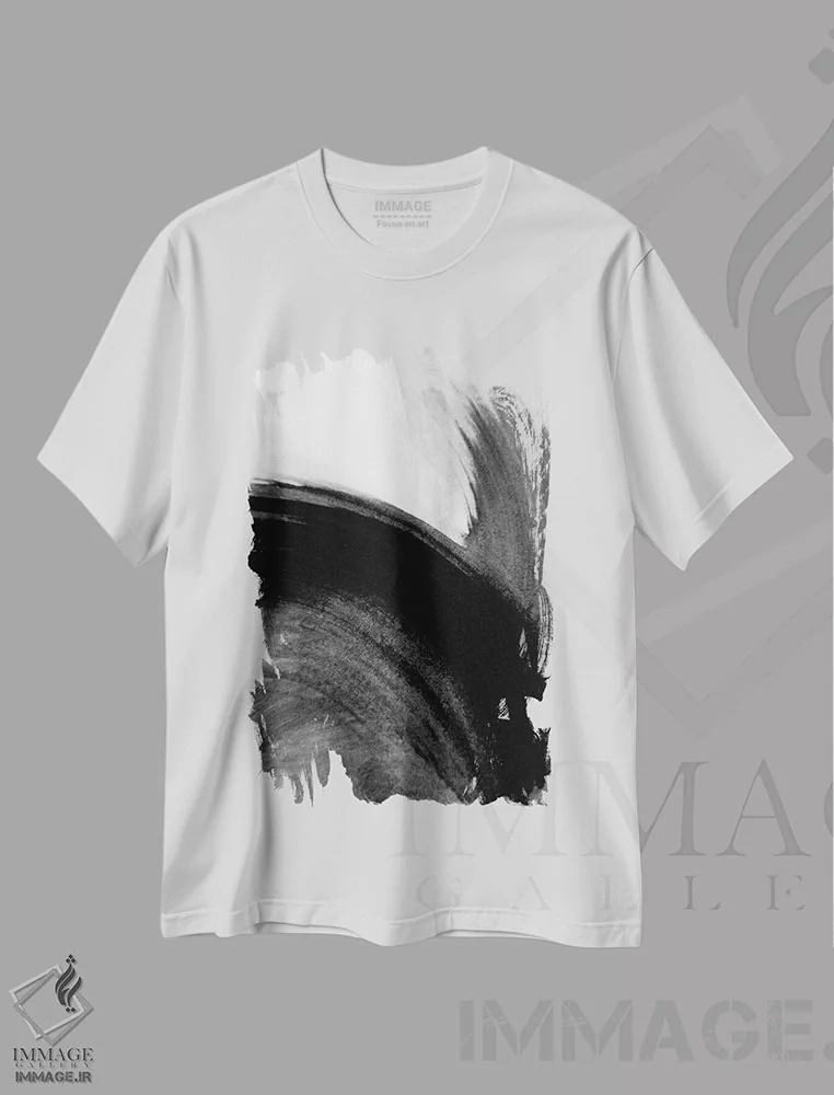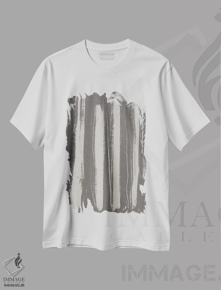 تیشرت سفید طرح دار قلم موی انتزاعی III اثر ۳۳ استخوان شکسته | فروشگاه ایماژ تیشرت طرح دار قلم موی انتزاعی III اثر استخوان شکسته