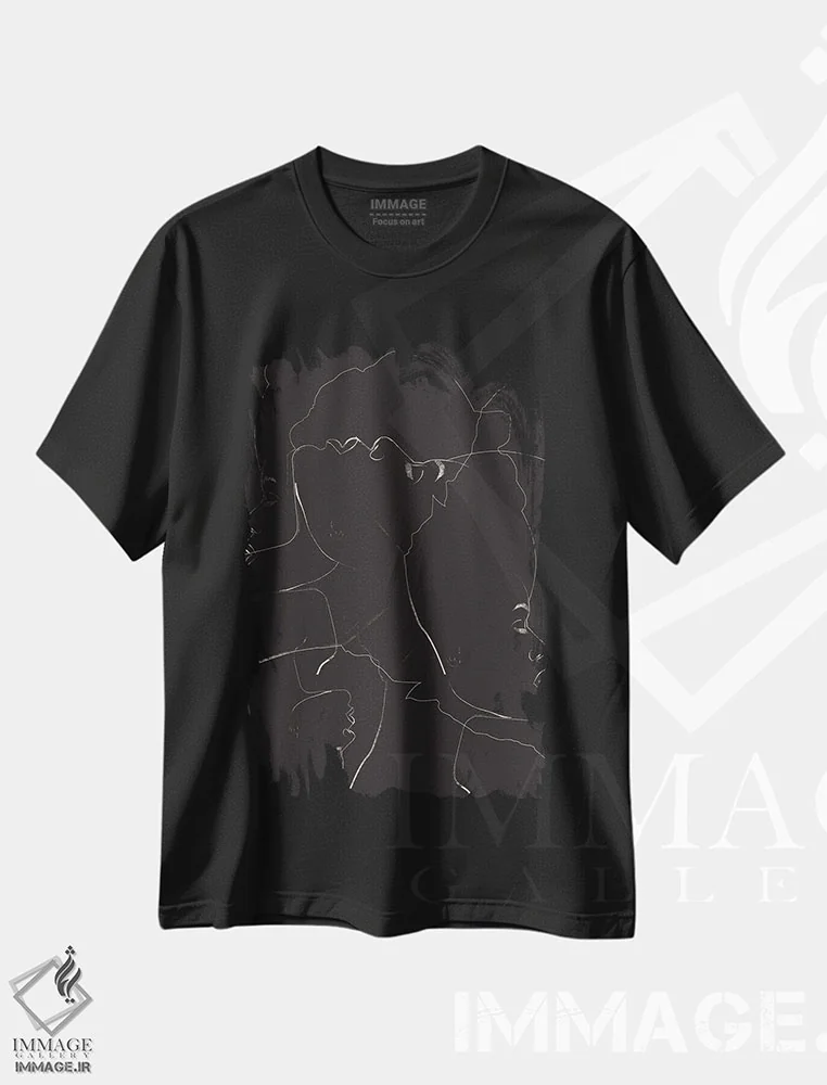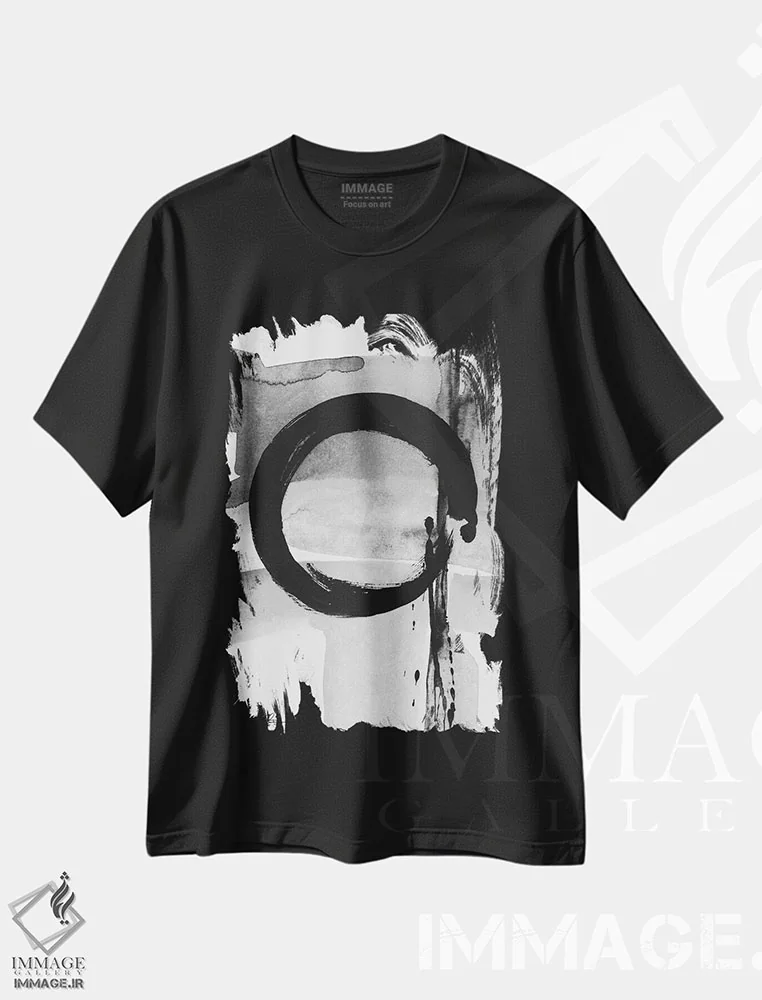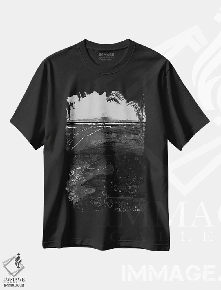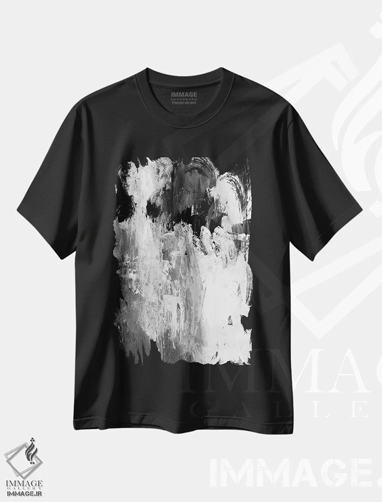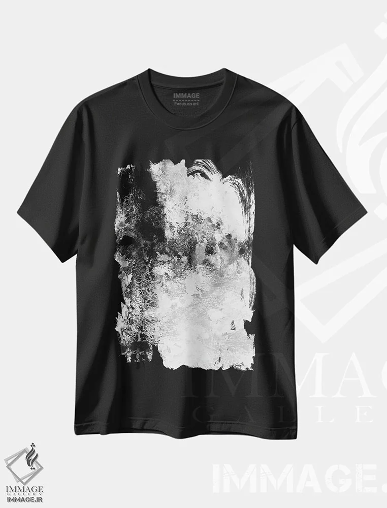 تیشرت مشکی طرح دار خاکستری، آبستره اثر کوروش نژاد | فروشگاه ایماژ تیشرت طرح دار خاکستری اثر کوروش نژاد
