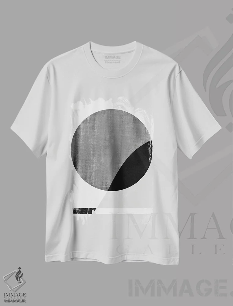 تیشرت سفید طرح دار فرم انتزاعی ماه سیاه اثر دانیلو د آلکساندریا | فروشگاه ایماژ تیشرت طرح دار فرم انتزاعی ماه سیاه اثر دانیلو د آلکساندریا