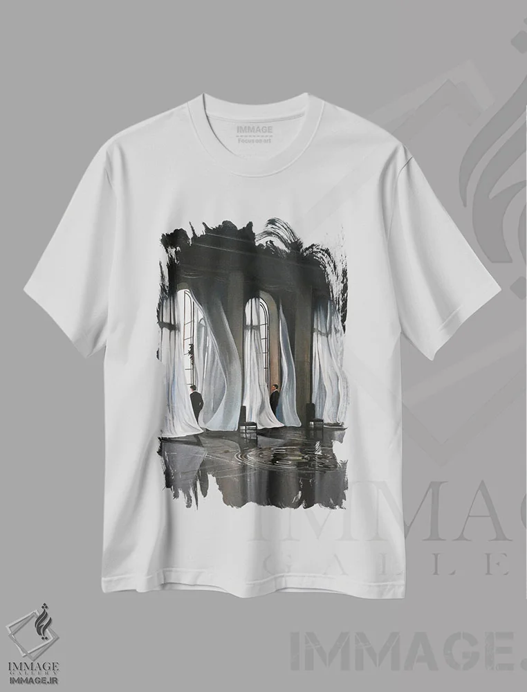 تیشرت سفید طرح دار ریتم آبشار ۲ اثر جون اریکا وس | فروشگاه ایماژ تیشرت طرح دار ریتم آبشار اثر جون اریکا وس