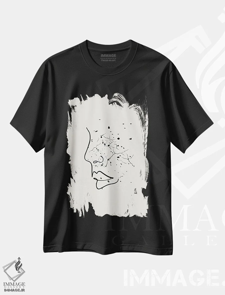 تیشرت مشکی طرح دار آماده ام، تزئینی اثر گیسل دکل | فروشگاه ایماژ تیشرت طرح دار آماده ام اثر گیسل دکل