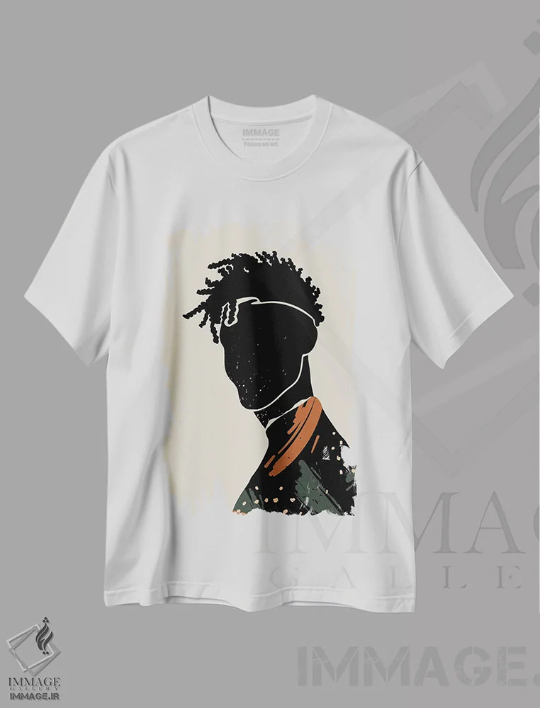 تیشرت سفید طرح دار موی سیاه II، هنر آمریکایی آفریقایی تبار اثر دومونیک براون | فروشگاه ایماژ تیشرت طرح دار موی سیاه II اثر دومونیک براون
