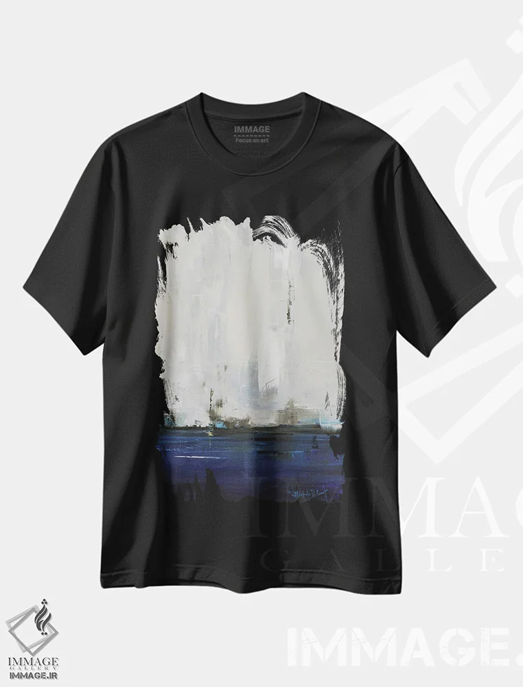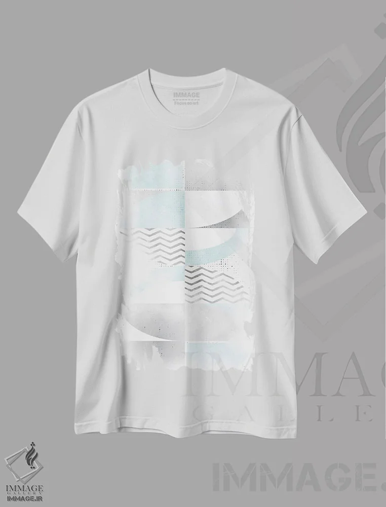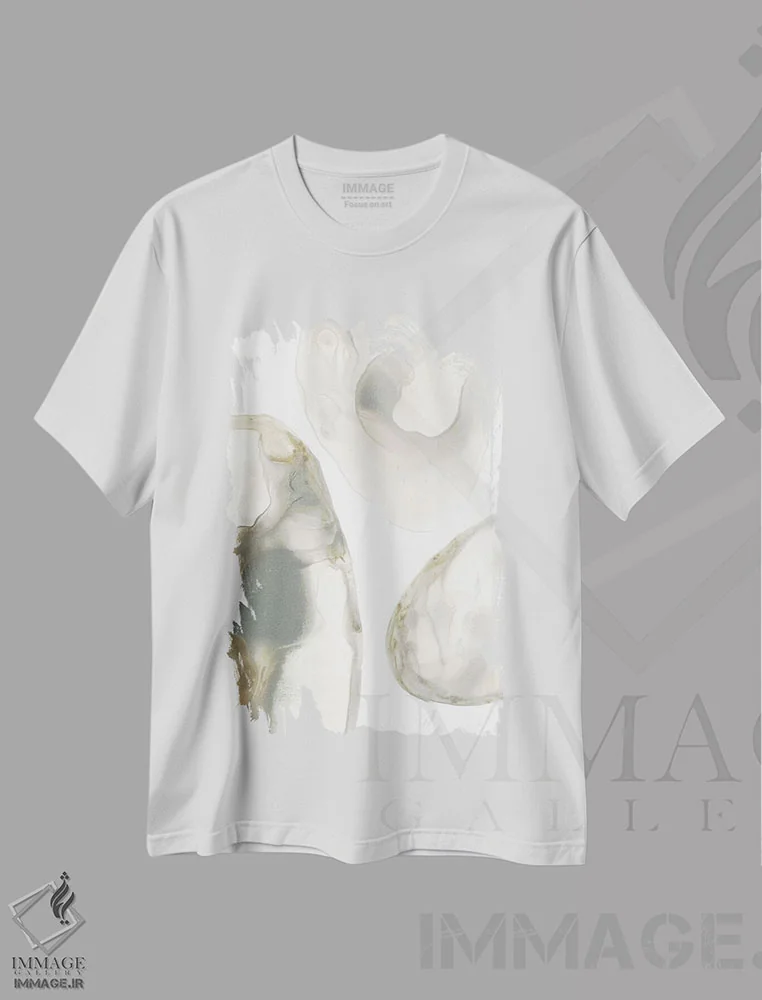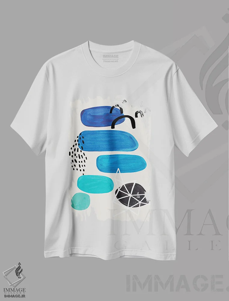 تیشرت سفید طرح دار هفت دریا، آبستره اثر ان شیپ | فروشگاه ایماژ تیشرت طرح دار هفت دریا اثر ان شیپ