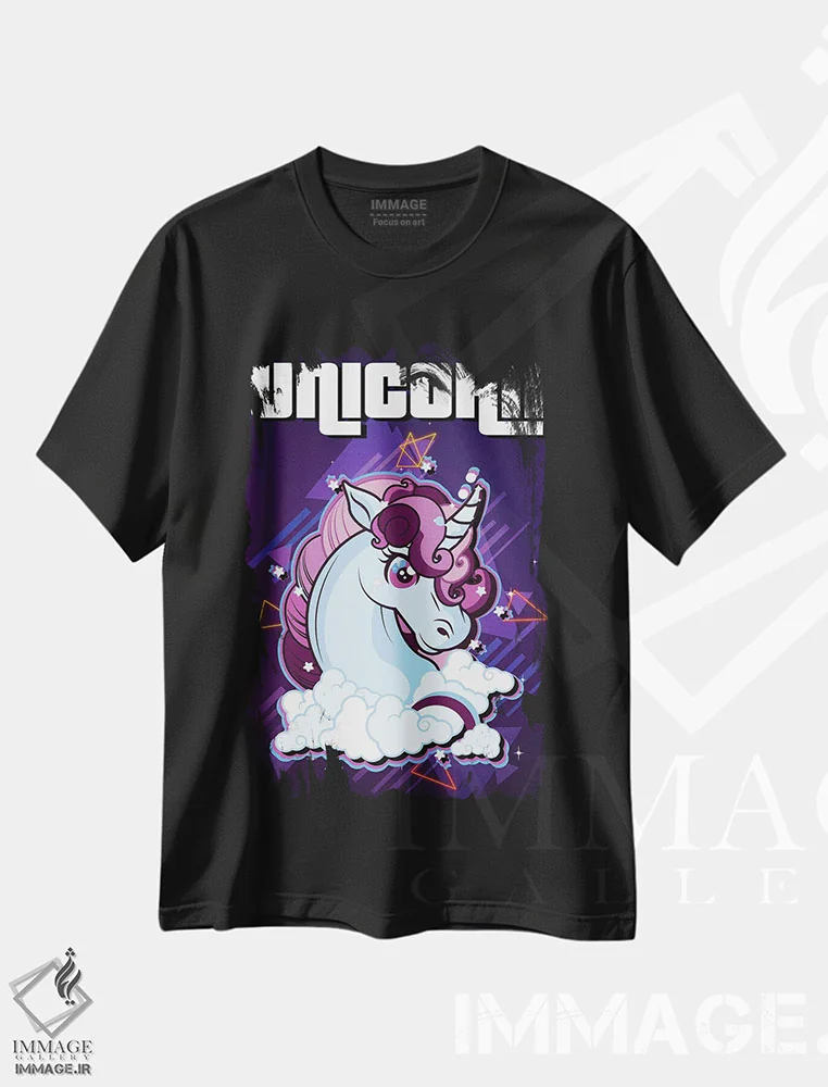 تیشرت مشکی طرح دار تک شاخ رترو I، تزئینی اثر گب فرناندو | فروشگاه ایماژ تیشرت طرح دار تک شاخ رترو I اثر گب فرناندو