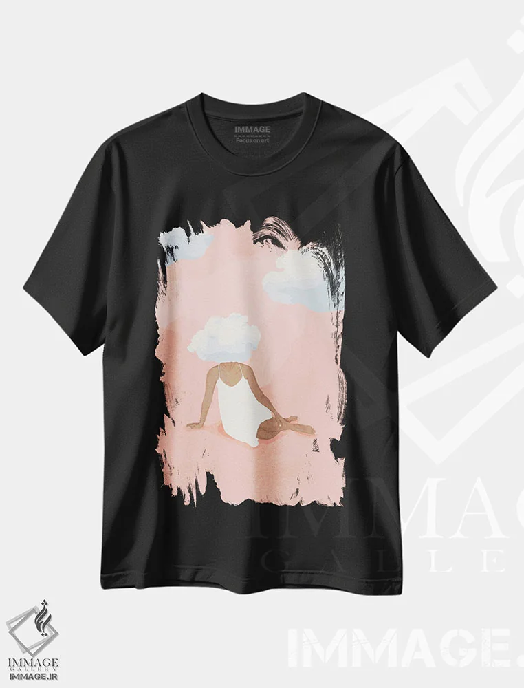 تیشرت مشکی طرح دار مدیتیشن صورتی، تزئینی اثر گیسل دکل | فروشگاه ایماژ تیشرت طرح دار مدیتیشن صورتی اثر گیسل دکل