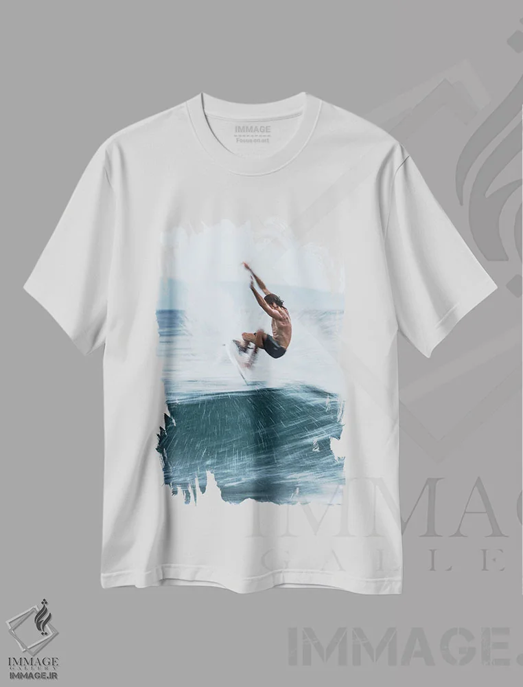 تیشرت سفید طرح دار پاشش موج، تصاویر اکشن اثر هانا پریویت | فروشگاه ایماژ تیشرت طرح دار پاشش موج اثر هانا پریویت