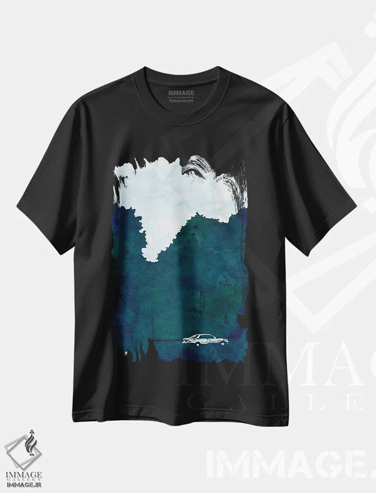 تیشرت مشکی طرح دار گم شده در دریا، آبستره اثر ان شیپ | فروشگاه ایماژ تیشرت طرح دار گم شده در دریا اثر ان شیپ