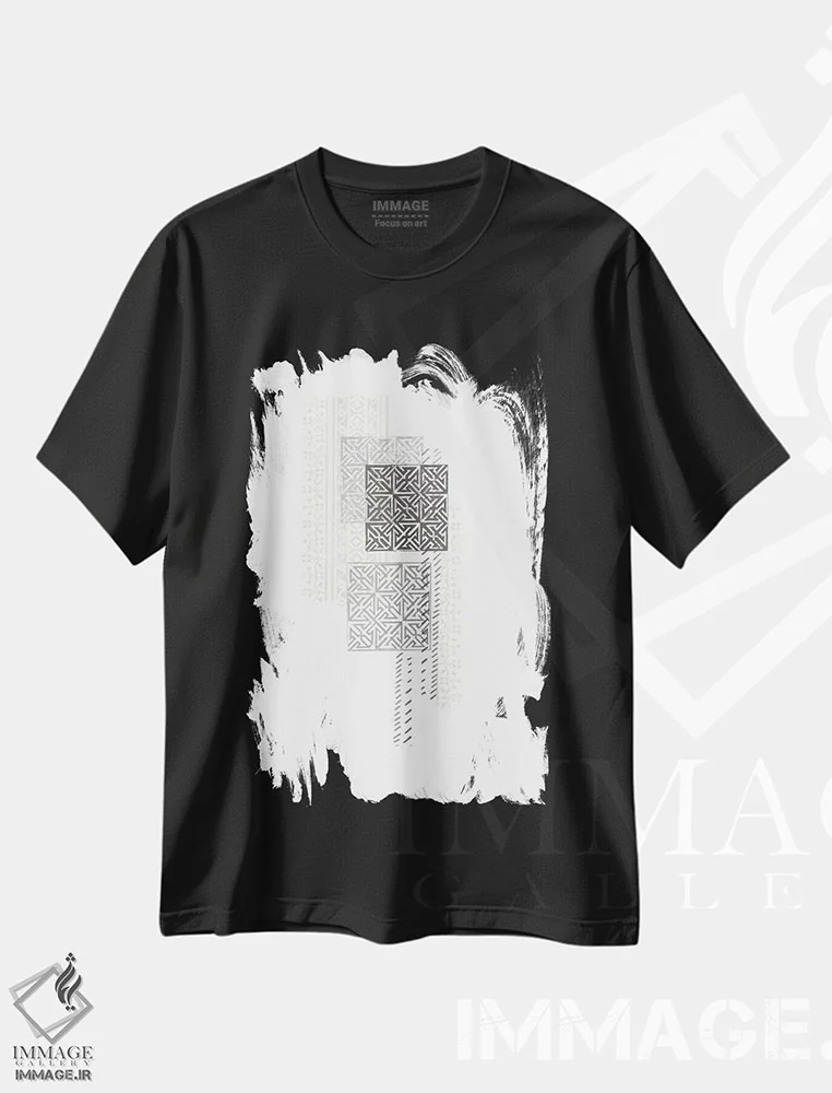 تیشرت مشکی طرح دار انتزاع هندسی اثر کوبیستیکا | فروشگاه ایماژ تیشرت طرح دار انتزاع هندسی اثر کوبیستیکا
