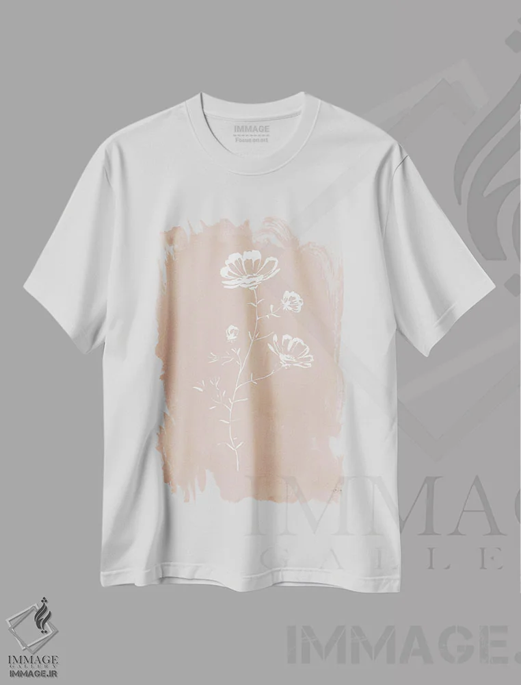 تیشرت سفید طرح دار گل دار مه دریایی ۱، آبستره اثر فلورا کوتا | فروشگاه ایماژ تیشرت طرح دار گل دار مه دریایی اثر فلورا کوتا