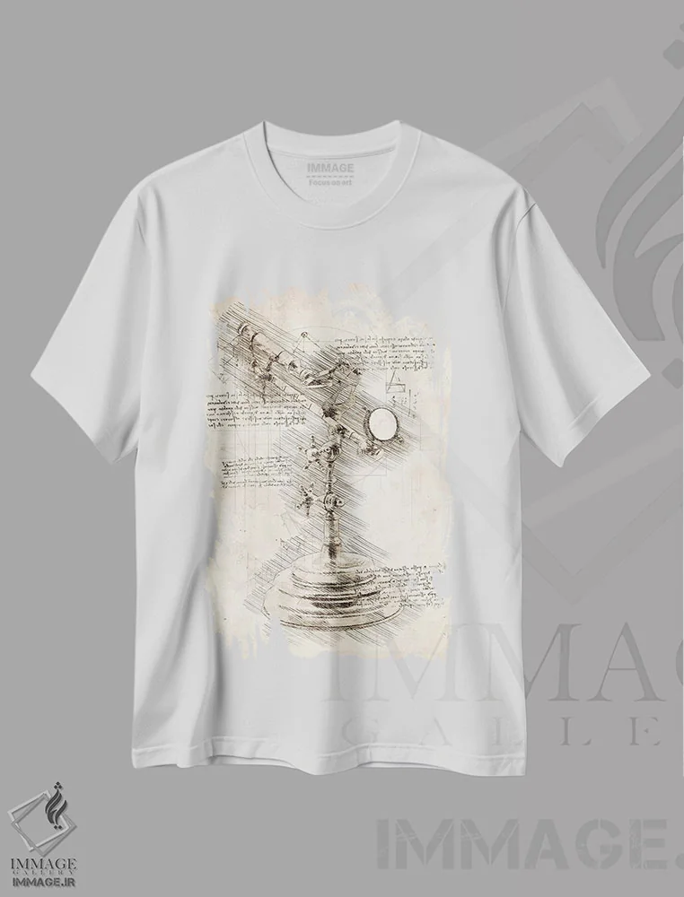 تیشرت سفید طرح دار تلسکوپ عتیقه، تزئینی اثر کورنل ولاد | فروشگاه ایماژ تیشرت طرح دار تلسکوپ عتیقه اثر کورنل ولاد
