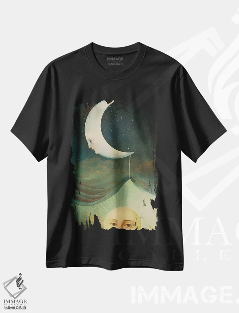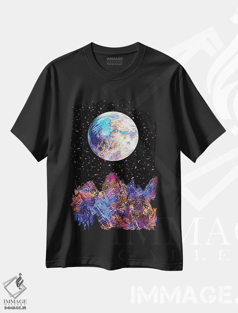 تیشرت مشکی طرح دار تابیده از ماه، دکوراسیون جایگزین اثر انکل دیکا | فروشگاه ایماژ تیشرت طرح دار تابیده از ماه اثر انکل دیکا