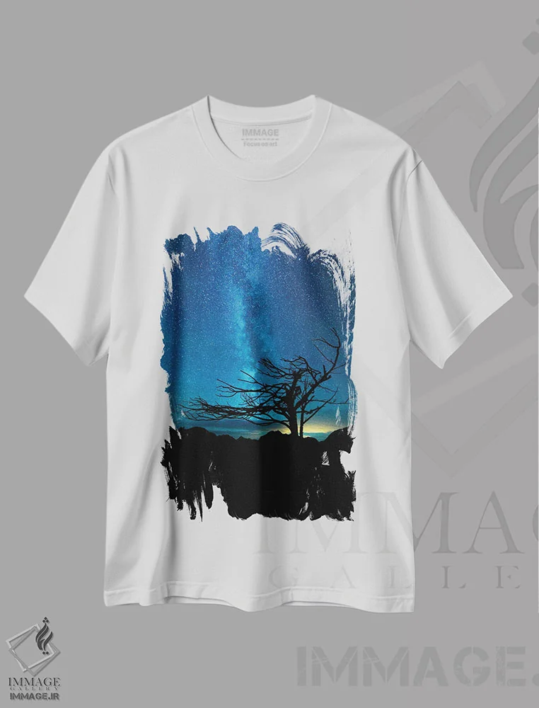 تیشرت سفید طرح دار آسمان شب، مدیوم اثر آدریان بوردَا | فروشگاه ایماژ تیشرت طرح دار آسمان شب اثر آدریان بوردَا