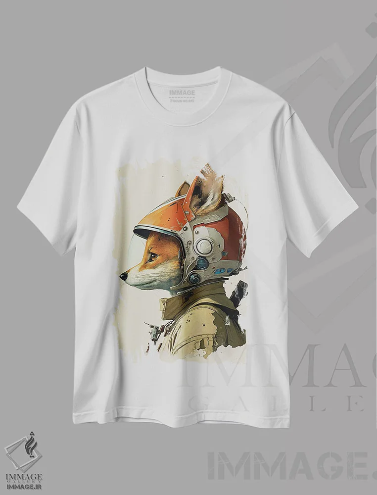 تیشرت سفید طرح دار روباه فضانورد، هنر دیجیتال اثر دورو آرت | فروشگاه ایماژ تیشرت طرح دار روباه فضانورد اثر دورو آرت