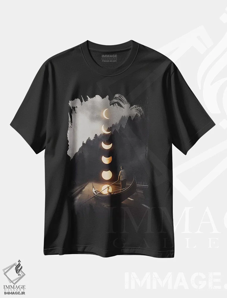 تیشرت مشکی طرح دار ماه کامل ۱۸، تزئینی اثر گب فرناندو | فروشگاه ایماژ تیشرت طرح دار ماه کامل اثر گب فرناندو