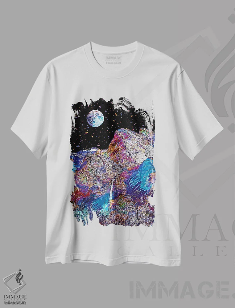 تیشرت سفید طرح دار ماه کامل ۱۹، تزئینی اثر گب فرناندو | فروشگاه ایماژ تیشرت طرح دار ماه کامل اثر گب فرناندو