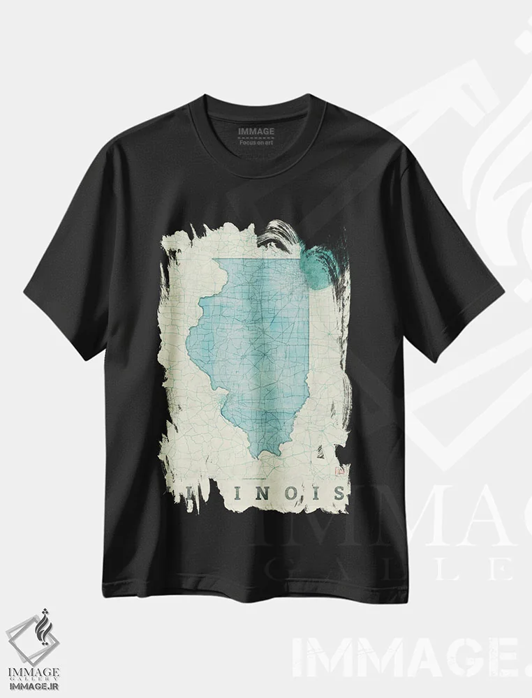 تیشرت مشکی طرح دار نقشه ایلینوی، تزئینی اثر هوبرت روگوسکی | فروشگاه ایماژ تیشرت طرح دار نقشه ایلینوی اثر هوبرت روگوسکی