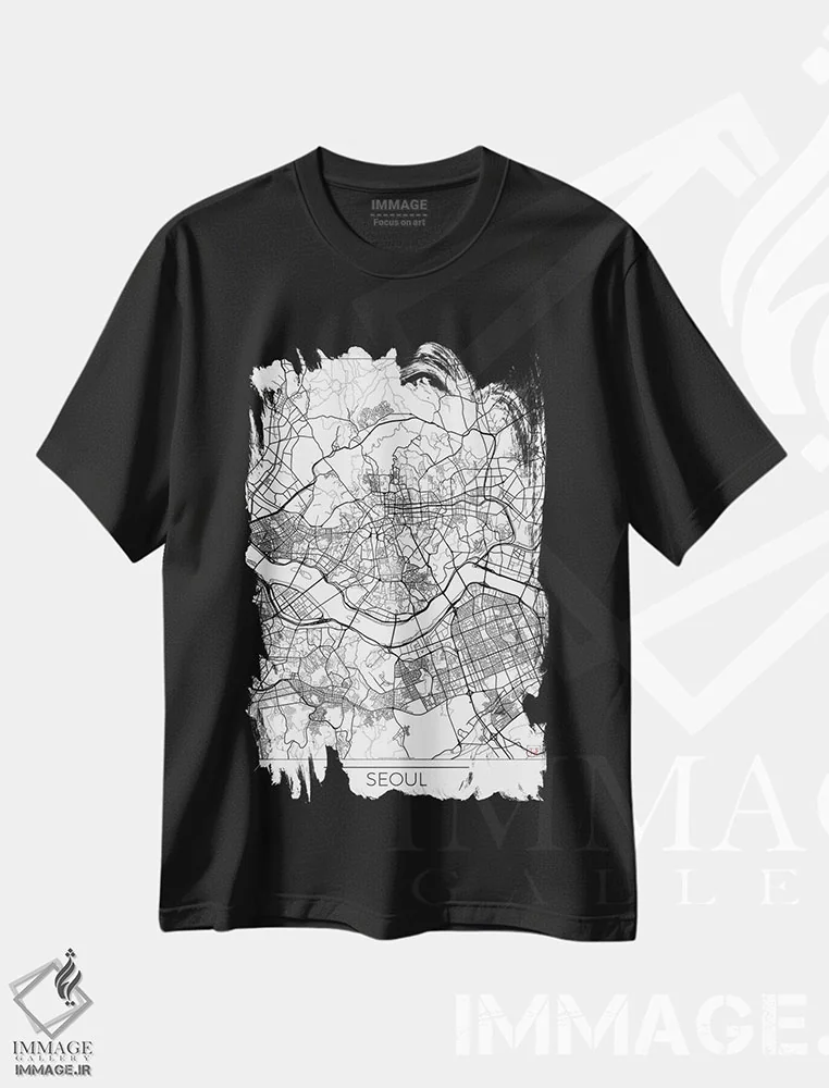 تیشرت مشکی طرح دار نقشه طرح شهری مینیمال سئول، هنر دیجیتال اثر هوبرت روگوسکی | فروشگاه ایماژ تیشرت طرح دار نقشه طرح شهری مینیمال سئول اثر هوبرت روگوسکی