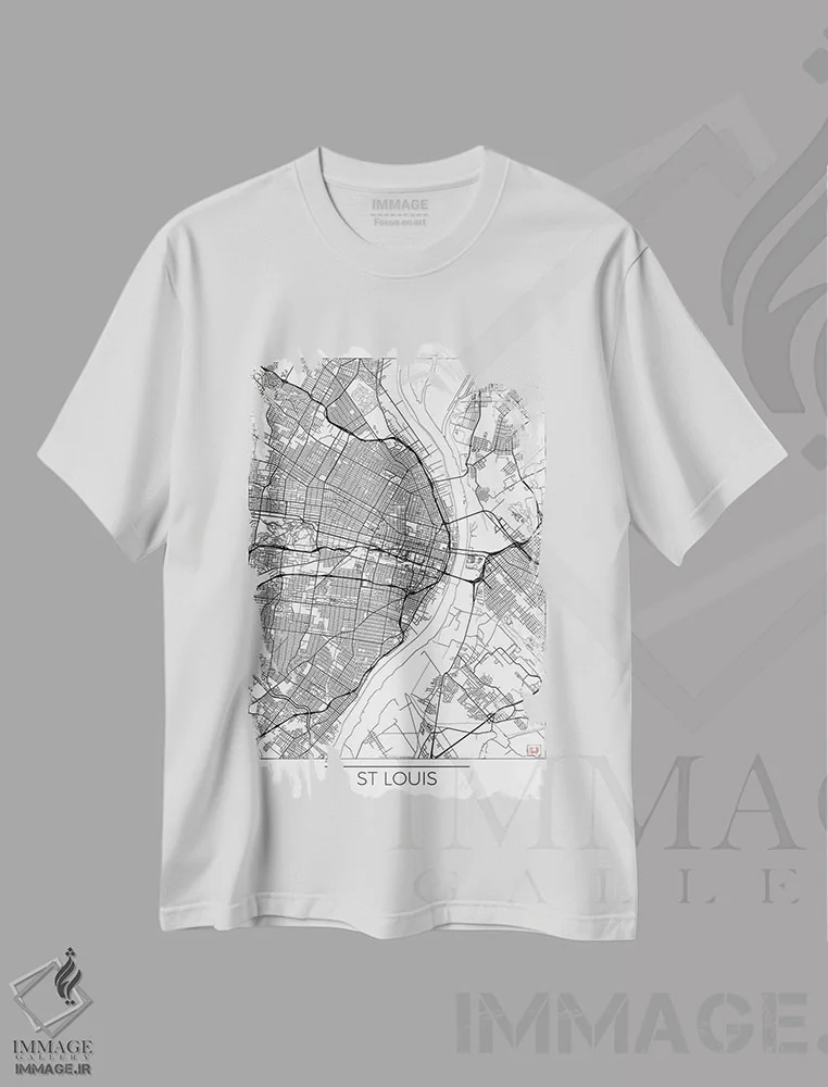 تیشرت سفید طرح دار نقشه طرح شهری مینیمال سنت لوئیس، هنر دیجیتال اثر هوبرت روگوسکی | فروشگاه ایماژ تیشرت طرح دار نقشه طرح شهری مینیمال سنت لوئیس اثر هوبرت روگوسکی