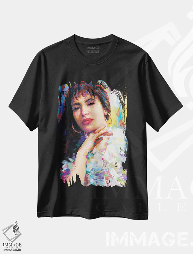 تیشرت مشکی طرح دار سلنا، هنر فاخر معاصر اثر لئون دوونیس | فروشگاه ایماژ تیشرت طرح دار سلنا اثر لئون دوونیس