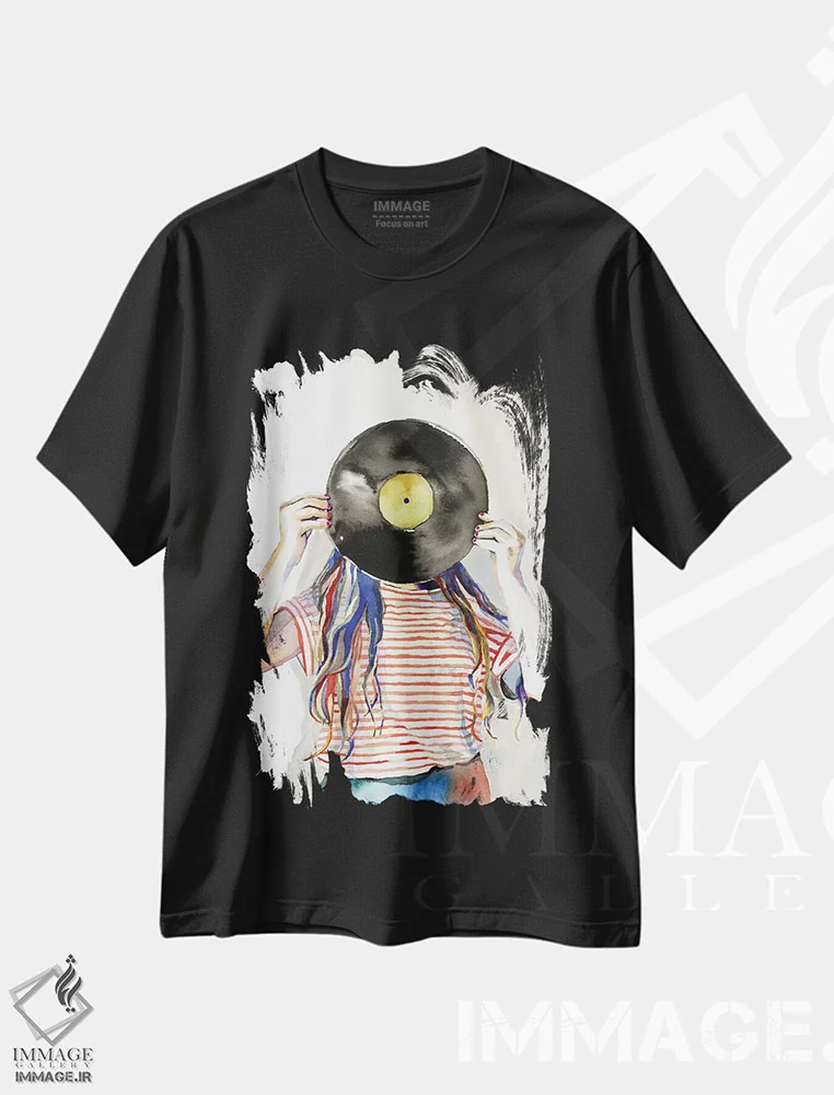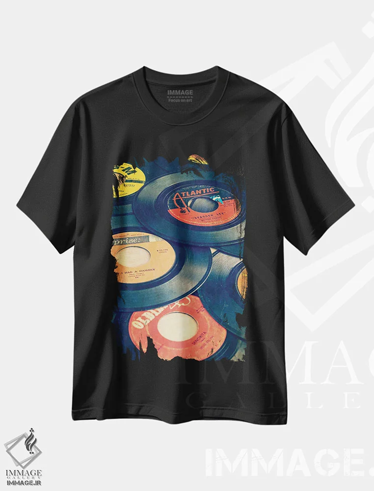 تیشرت مشکی طرح دار صدای دهه هفتاد، آبستره اثر ان شیپ | فروشگاه ایماژ تیشرت طرح دار صدای دهه هفتاد اثر ان شیپ