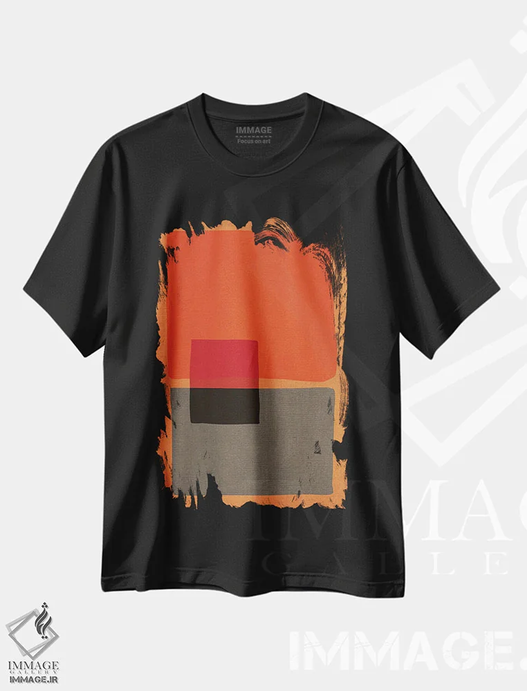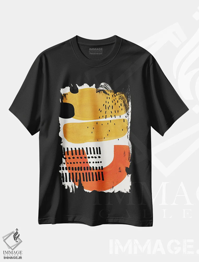 تیشرت مشکی طرح دار بلوک رنگ نارنجی بژ تیره I، آبستره اثر ام سی دیزاین لب | فروشگاه ایماژ تیشرت طرح دار بلوک رنگ نارنجی بژ تیره I اثر ام سی دیزاین لب