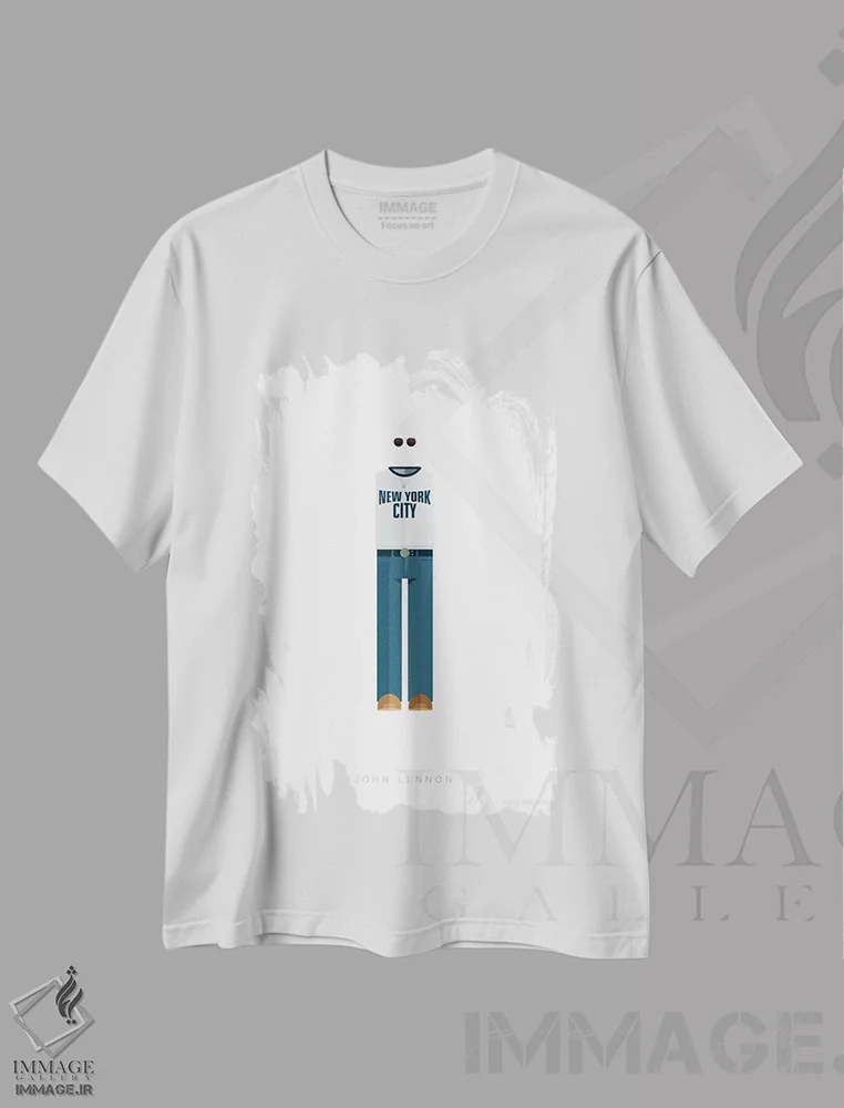 تیشرت سفید طرح دار جان لنون، هنر دیجیتال اثر فرد بیرچال | فروشگاه ایماژ تیشرت طرح دار جان لنون اثر فرد بیرچال