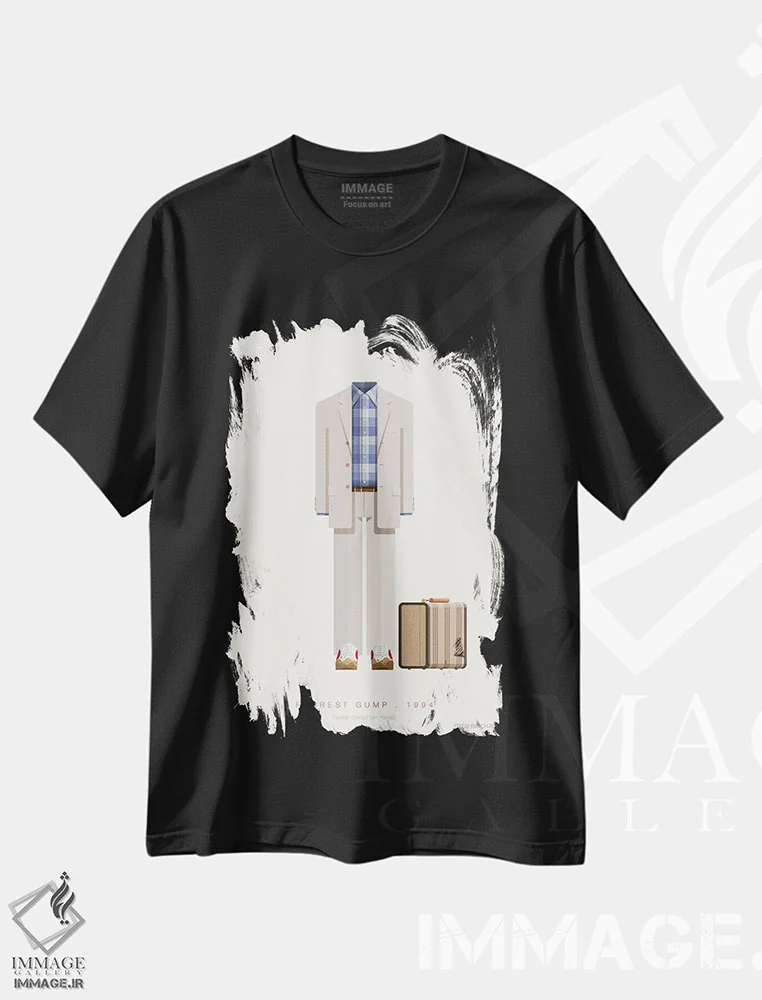 تیشرت مشکی طرح دار فارست گامپ، ۱۹۹۴، تزئینی اثر فرد بیرچال | فروشگاه ایماژ تیشرت طرح دار فارست گامپ، اثر فرد بیرچال