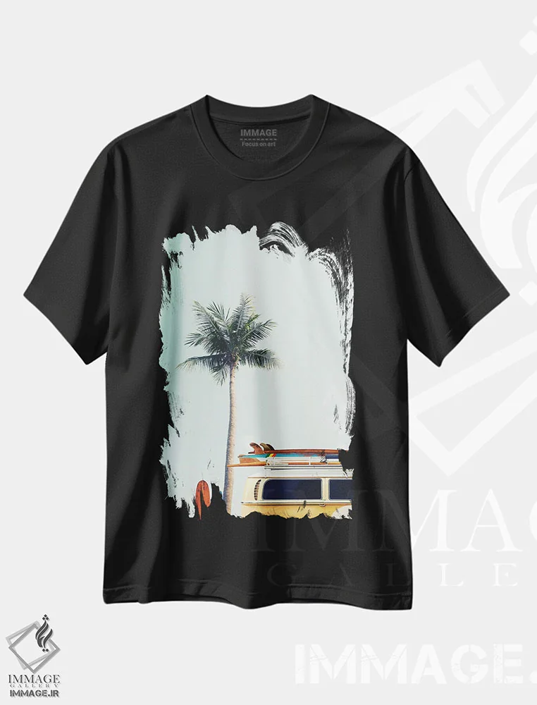 تیشرت مشکی طرح دار اتوبوس ساحلی زرد، تزئینی اثر دیزاین فابریکن | فروشگاه ایماژ تیشرت طرح دار اتوبوس ساحلی زرد اثر دیزاین فابریکن