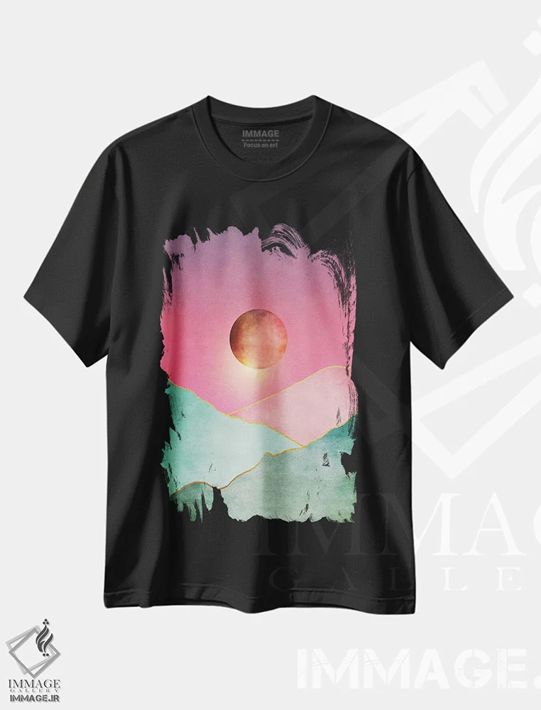 تیشرت مشکی طرح دار غروب فراواقع گرایانه دوم، آبستره اثر مارکو گونزالز | فروشگاه ایماژ تیشرت طرح دار غروب فراواقع گرایانه دوم اثر مارکو گونزالز