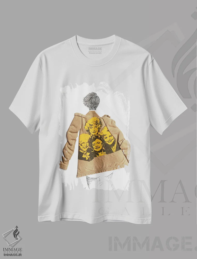 تیشرت سفید طرح دار ترنچ دختران طلایی، مدیوم اثر کِلی لوتهال | فروشگاه ایماژ تیشرت طرح دار ترنچ دختران طلایی اثر کِلی لوتهال