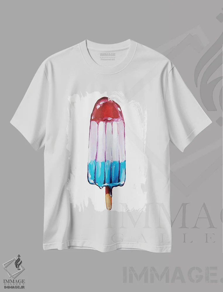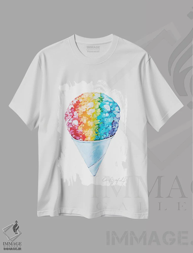 تیشرت سفید طرح دار سرزمین بستنی، آبستره اثر الیزابت فردریکسون | فروشگاه ایماژ تیشرت طرح دار سرزمین بستنی اثر الیزابت فردریکسون