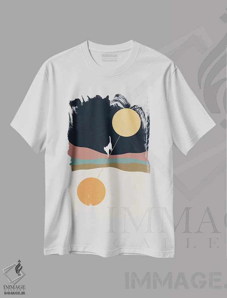 تیشرت سفید طرح دار منظرهٔ مینیمال هشتم، آبستره اثر مارکو گونزالز | فروشگاه ایماژ تیشرت طرح دار منظرهٔ مینیمال هشتم اثر مارکو گونزالز