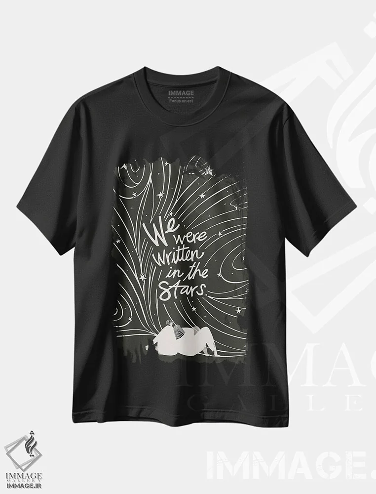 تیشرت مشکی طرح دار ستاره های نوشته شده، هنر تزئینی سیاه و سفید اثر هانا بایزنگ | فروشگاه ایماژ تیشرت طرح دار ستاره های نوشته شده اثر هانا بایزنگ