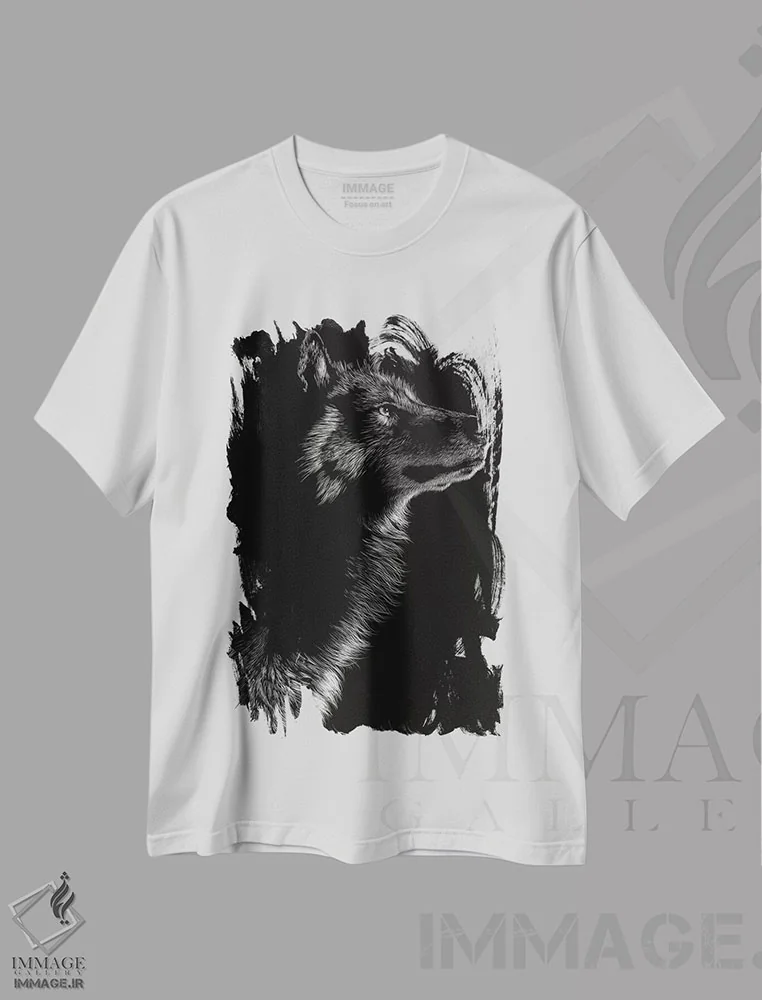 تیشرت سفید طرح دار گرگ ۲، هنر تزئینی سیاه و سفید اثر جولی تی. چاپمن | فروشگاه ایماژ تیشرت طرح دار گرگ اثر جولی تی. چاپمن