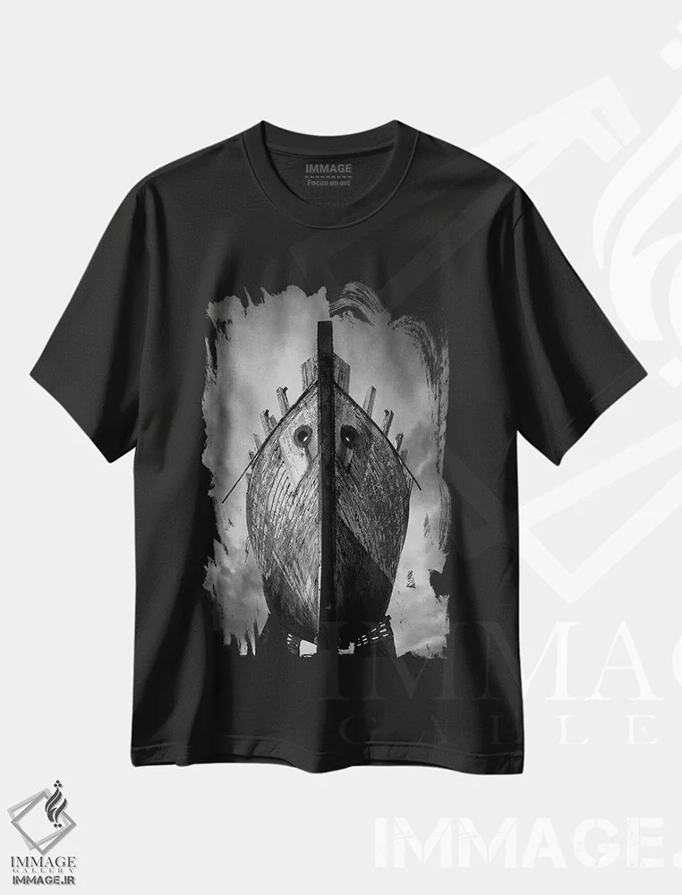 تیشرت مشکی طرح دار دراکار، عکاسی سیاه و سفید اثر سباستین دل گروسو | فروشگاه ایماژ