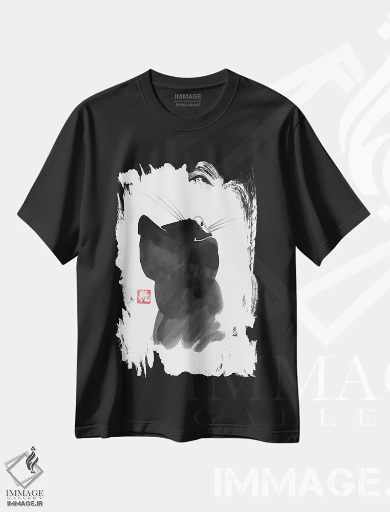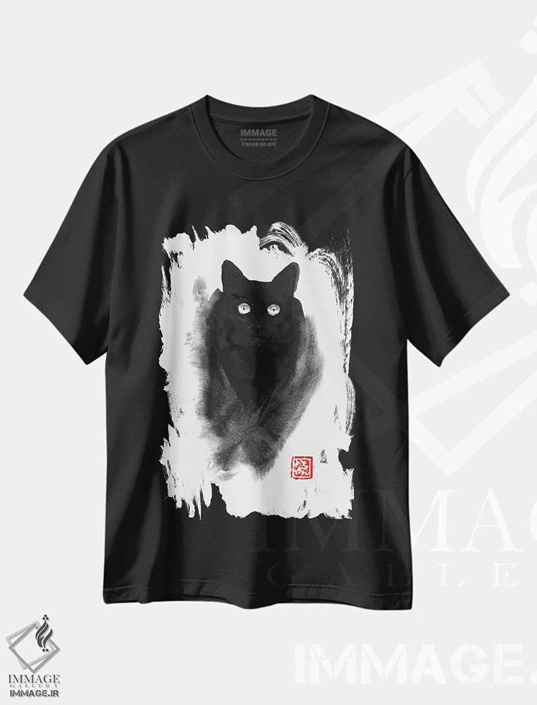تیشرت مشکی طرح دار – تیشرت مینیمال ,پشت گربه اثر پِشان فروشگاه ایماژ