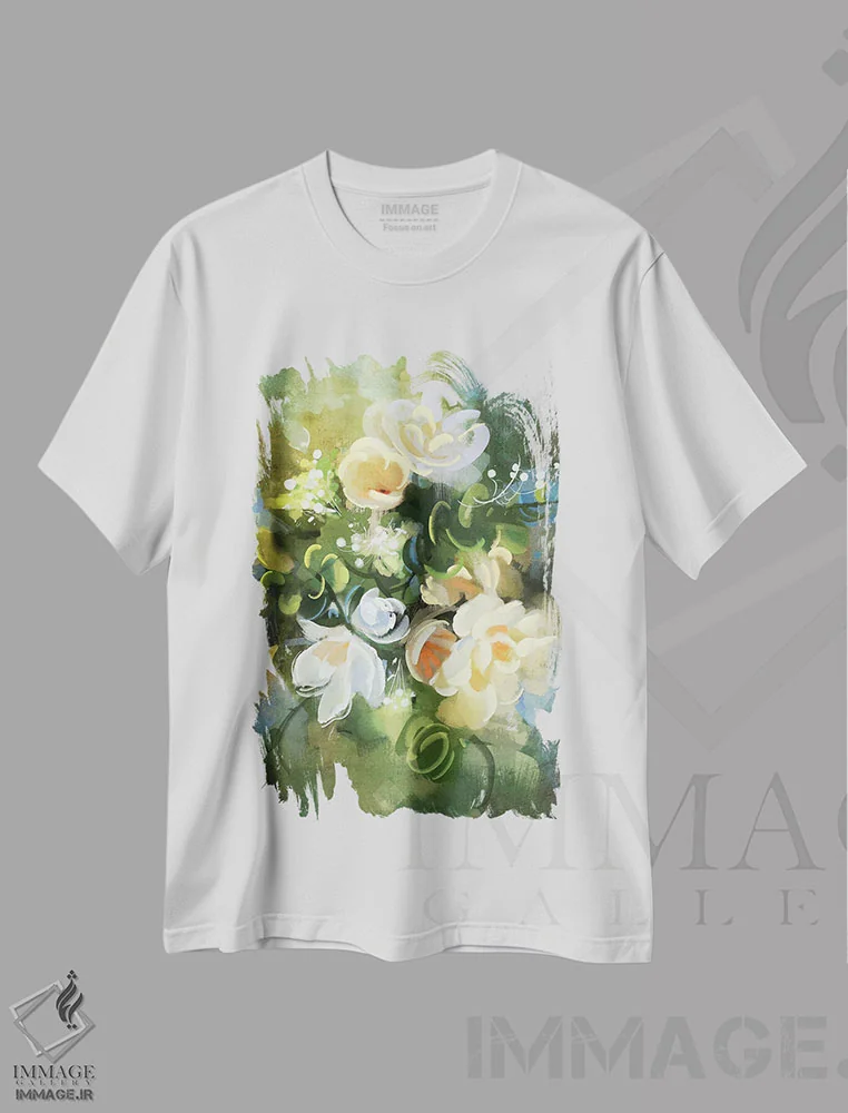 تیشرت سفید طرح دار سرود بهار، هنر فاخر معاصر اثر استیو گود | فروشگاه ایماژ تیشرت طرح دار سرود بهار اثر استیو گود