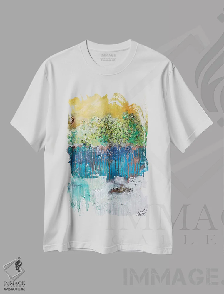 تیشرت سفید طرح دار "سپهر" اثر کارول لین تایس | فروشگاه ایماژ تیشرت طرح دار "سپهر" اثر کارول لین تایس