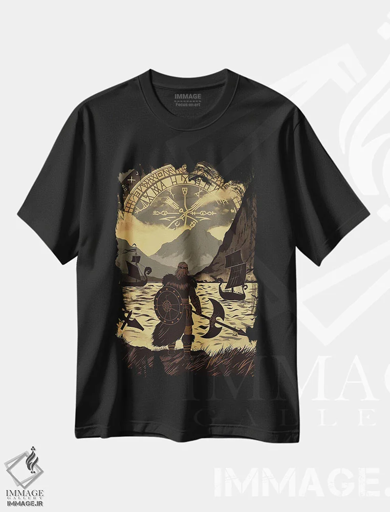 تیشرت مشکی طرح دار جنگجوی وایکینگ III، دکوراسیون جایگزین اثر دورو آرت | فروشگاه ایماژ