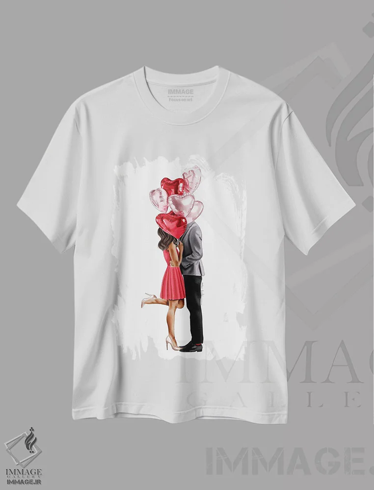 تیشرت سفید طرح دار ولنتاین بوس و بغل، تزئینی اثر هدر لندیس | فروشگاه ایماژ تیشرت طرح دار ولنتاین بوس و بغل اثر هدر لندیس