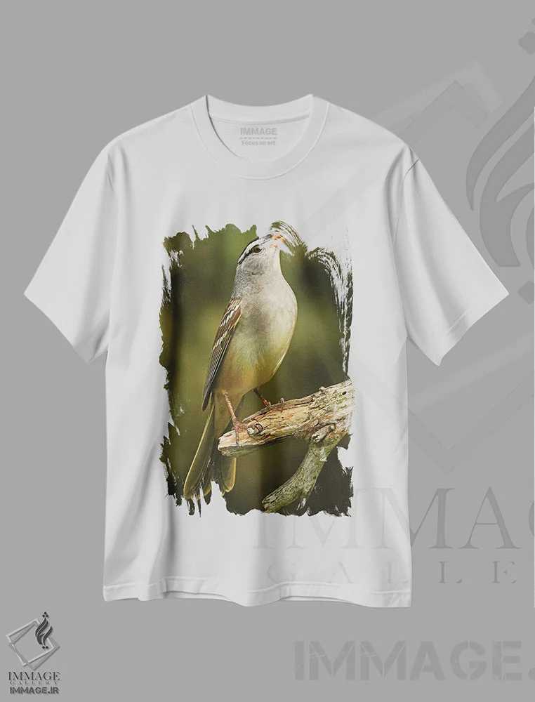 تیشرت سفید طرح دار گنجشک تاج سفید، مدیوم اثر برایان ولف | فروشگاه ایماژ تیشرت طرح دار گنجشک تاج سفید اثر برایان ولف