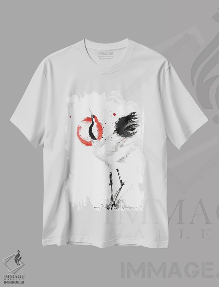 تیشرت سفید طرح دار درنای ژاپنی، دکوراسیون جایگزین اثر دوریانا پوپا | فروشگاه ایماژ تیشرت طرح دار درنای ژاپنی اثر دوریانا پوپا